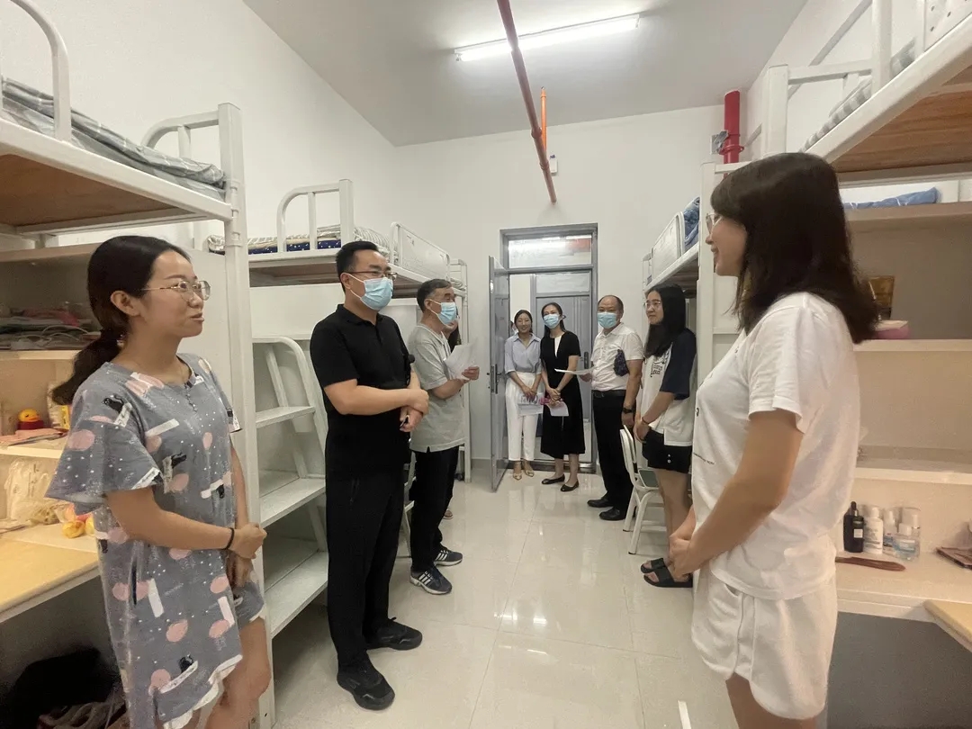 9月3日下午,我院党委书记刘杰、常务副院长王强、党委副书记邵平、副院长李建森、辅导员刘娟一行来到研究生公寓看望2021级新生。