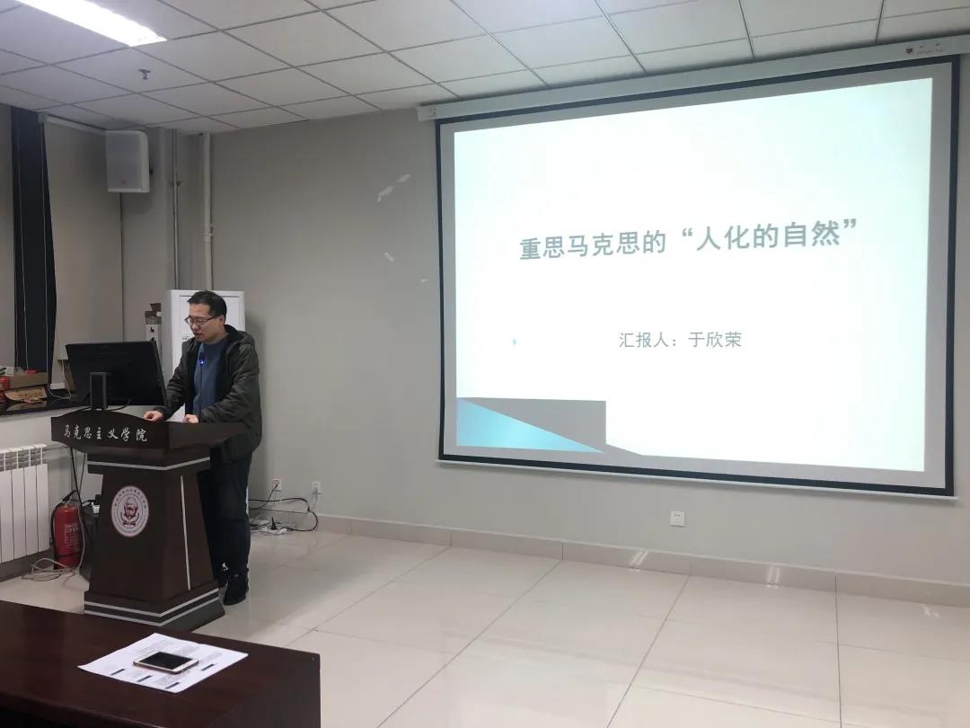 于欣荣同学以《重温马克思的“人化的自然”》为主题,分析了“人化自然”前提的自我设定、人自身对象化的进程以及“人化自然”与“历史自然”的区别,阐述了马克思主义自然观是建立在历史唯物主义基础上的自然观,对同学们深入、全面地认识和研究马克思主义自然观具有重要的启发意义。