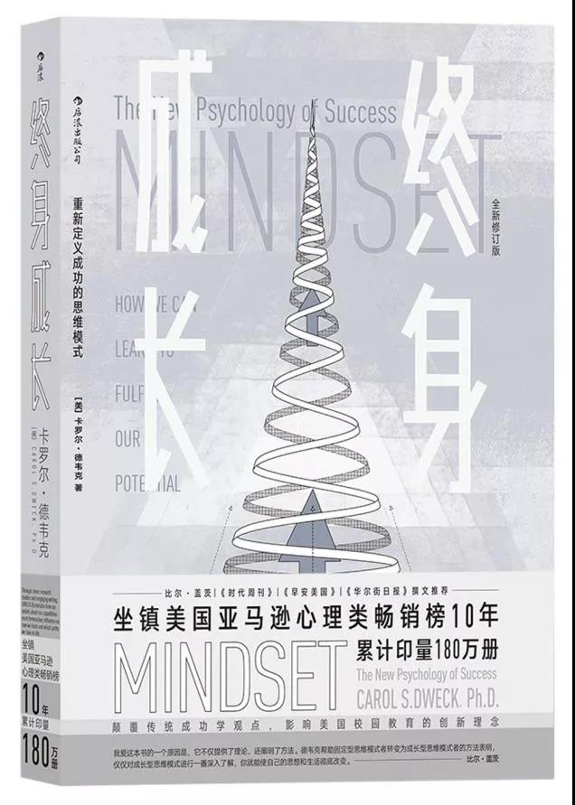 图片推荐读物: 《终身成长》的作者卡罗尔·德韦克博士是人格心理学、社会心理学和发展心理学领域内公认的杰出学者之一。书中介绍了两种思维模式:固定型与成长型,它们体现了应对成功与失败、成绩与挑战时的两种基本心态。你认为才智和努力哪个重要,能力能否通过努力改变,这决定了你是会满足于既有成果还是会积极探索新知。作者认为我们获得的成功并不是能力和天赋决定的,更受到我们在追求目标中展现的思维模式的影响;只有用正确的思维模式看待问题,才能更好地达成人生和职业目标。