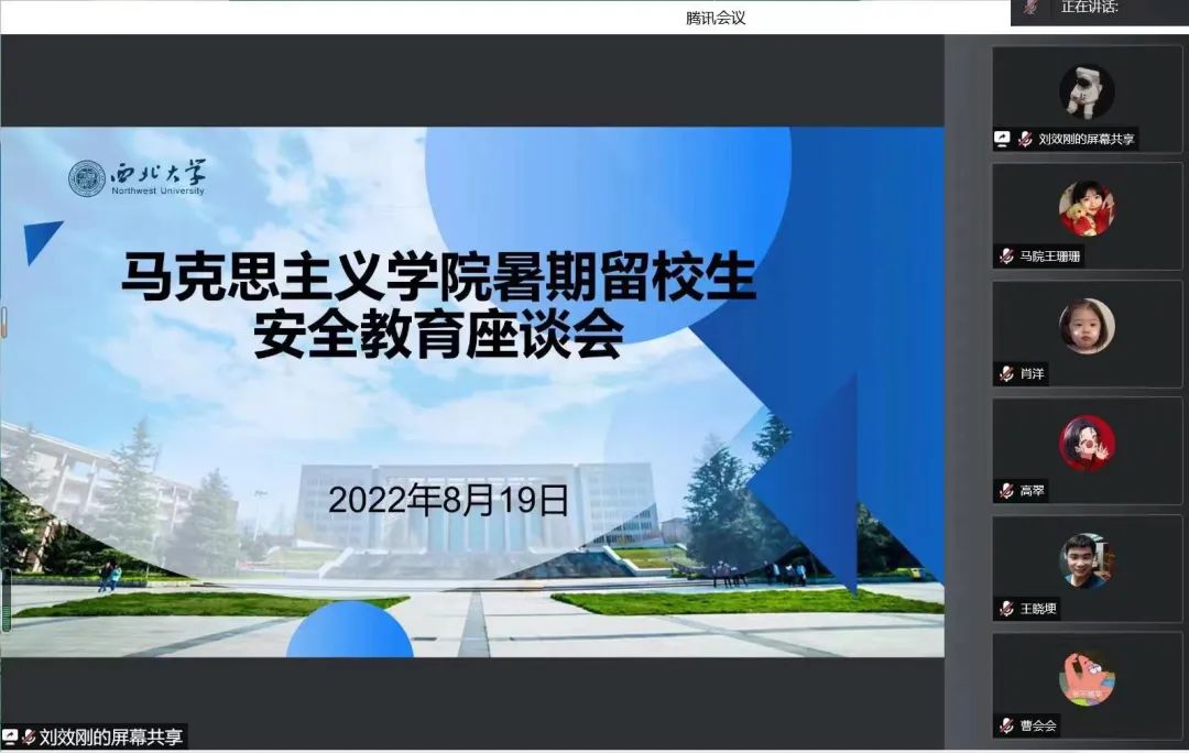 8月19日晚,马克思主义学院召开暑期留校生安全教育座谈会(线上),学院全体暑期留校生参加会议,会议由辅导员刘娟主持。
