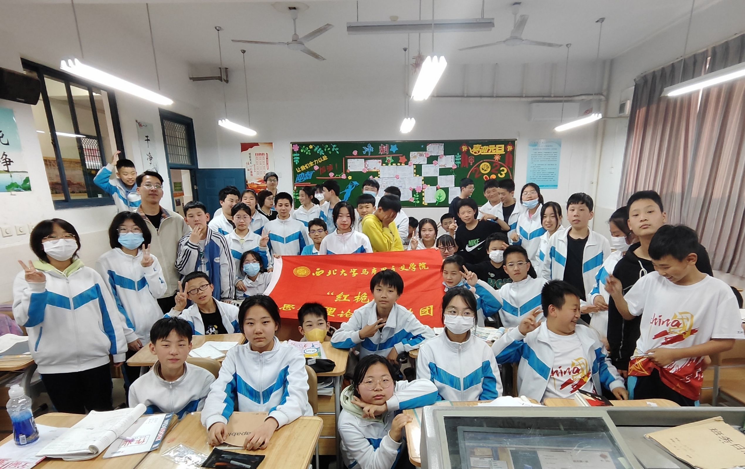 4月25日,我院“红桅杆”思政理论学习社团在长安区西北大学附属初级中学开展“思政宣讲进课堂” 。社团成员以《习近平新时代中国特色社会主义思想学生读本》为主要内容,在七年级的两个班级中进行了思政宣讲。本次主讲人是来自21级中国近现代史基本问题研究专业的硕士研究生黄文馨和22级马克思主义中国化专业的硕士研究生刘天霖。