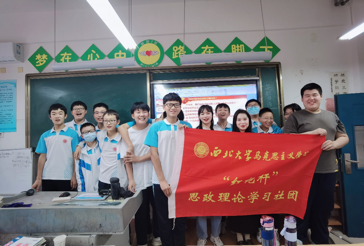 5月23日,我院“红桅杆”思政理论学习社团以《习近平新时代中国特色社会主义思想学生读本》为主要内容,在长安区西北大学附属初级中学为七年级同学开展思政课教育。本次活动的主讲人是来自21级中国近现代史基本问题研究专业的硕士研究生黄文馨和22级思想政治教育专业的硕士研究生张凡凡。