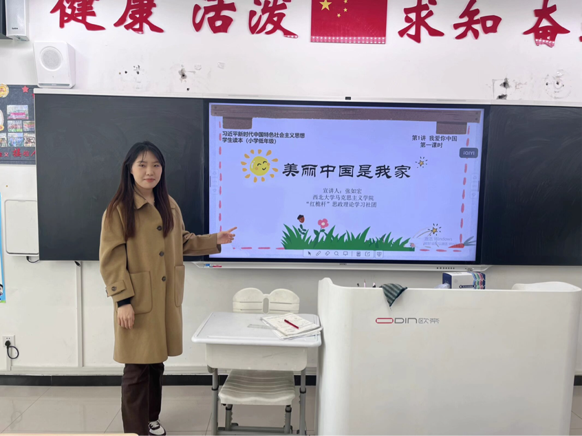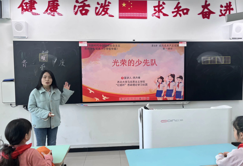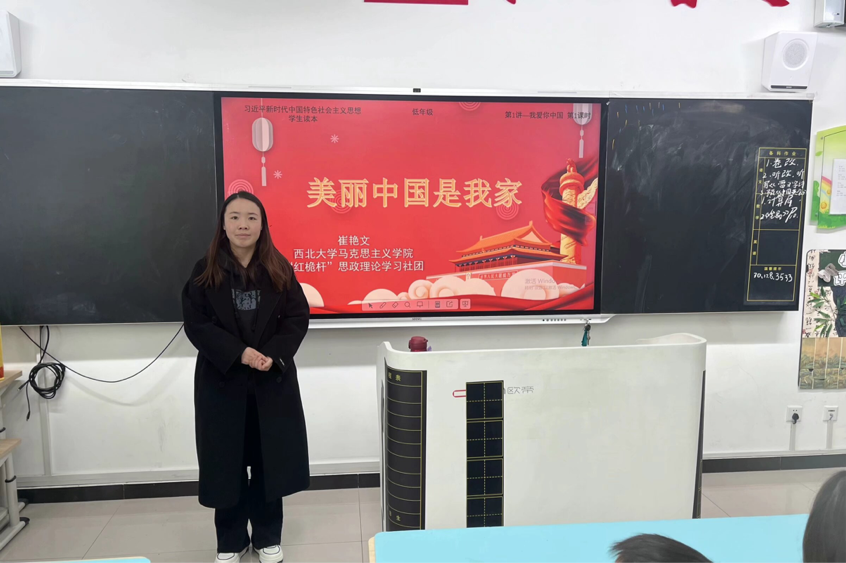 3月11日,我院红桅杆思政理论学习社团在西安市长安区第一小学实验小学,以《习近平新时代中国特色社会主义思想学生读本》(小学低年级)为主要内容,为二年级的小学生讲授思政课。主讲人分别是来自2022级和2023级的思想政治教育、马克思主义中国化研究与中国近现代史基本问题研究专业的11位硕士研究生。