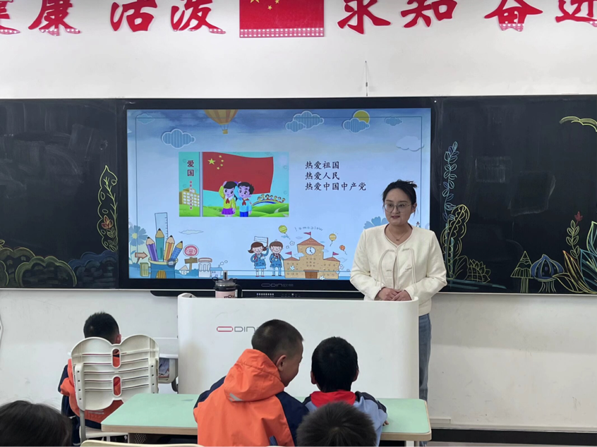 崔艳文以《我爱你中国》为题,为同学们介绍了国庆节的由来以及国旗、国徽、国歌的知识,并倡导同学们养成良好礼仪,培养学生的爱国情怀。