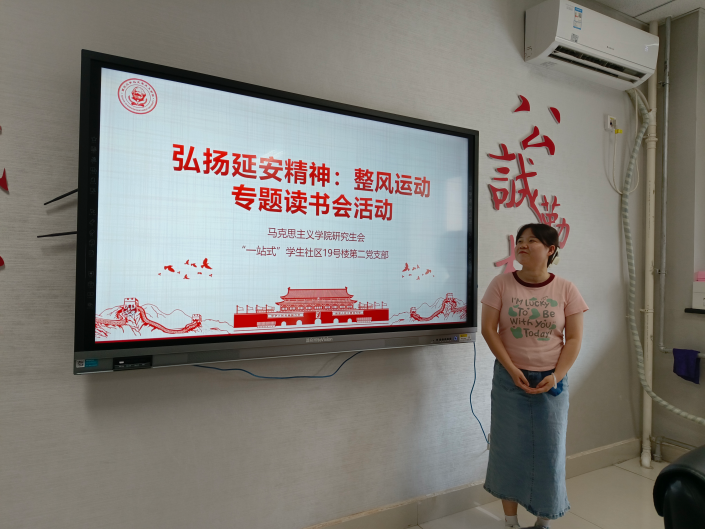 5月16日下午,我院研究生会与“一站式”学生社区19号楼第二党支部以“弘扬延安精神:整风运动”为主题联合开展读书交流活动。本次活动由我院2023级硕士研究生冯金香主持,我院研究生会“研马”读书会成员以及“一站式”学生社区19号楼第二党支部的部分同学参加。