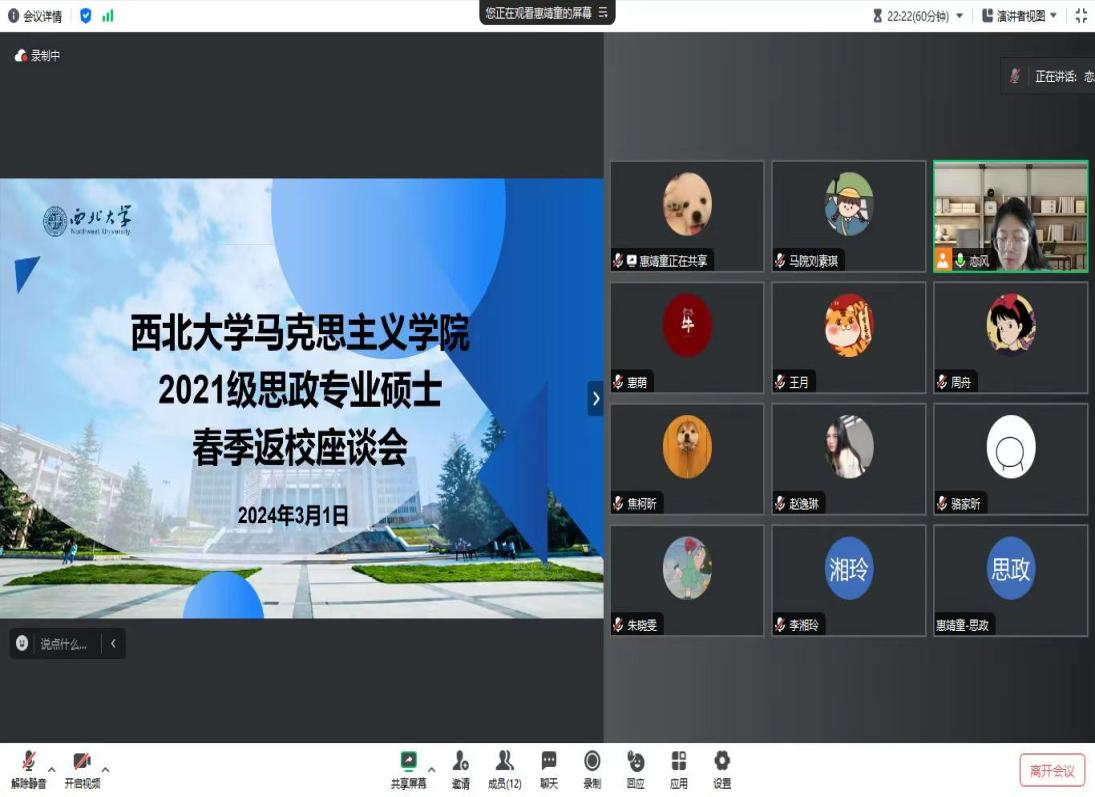 2月28日至3月2日,我院组织各班级召开2024年春季返乡座谈会。研究生各班主任由专业教师兼任,在与同学们进行沟通交流的过程中深入了解学生的思想动态和学习生活状况,同时为学生提供更好的学业指导。