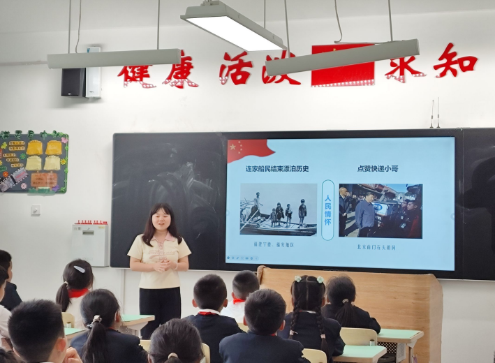 罗露以《新时代新生活》为主题,选取了“家乡、祖国的巨变”这一独特的视角,让学生们深切感受到了祖国人民的勤劳与智慧,提倡同学们要珍惜现在的生活。