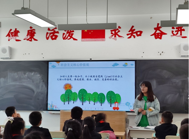 4月8日,我院红桅杆思政理论学习社团在西安市长安区第一小学实验小学,以《习近平新时代中国特色社会主义思想学生读本》(小学低年级)为主要内容,为二年级的小学生讲授思政课。主讲人分别是来自2022级和2023级的马克思主义中国化研究、思想政治教育与中国近现代史基本问题研究专业的12位硕士研究生。