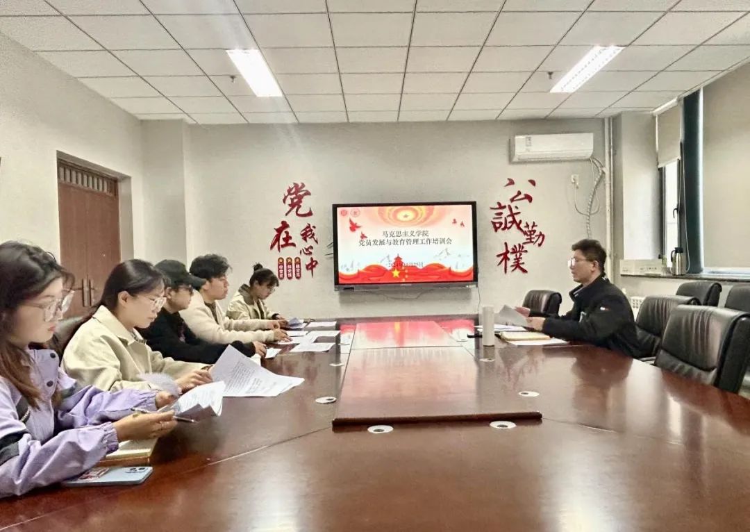 10月25日上午,我院在党建活动室召开党员发展与教育管理工作培训会。我院学生党支部书记、兼职辅导员、党务组组长参加,会议由我院党务秘书刘通主持。