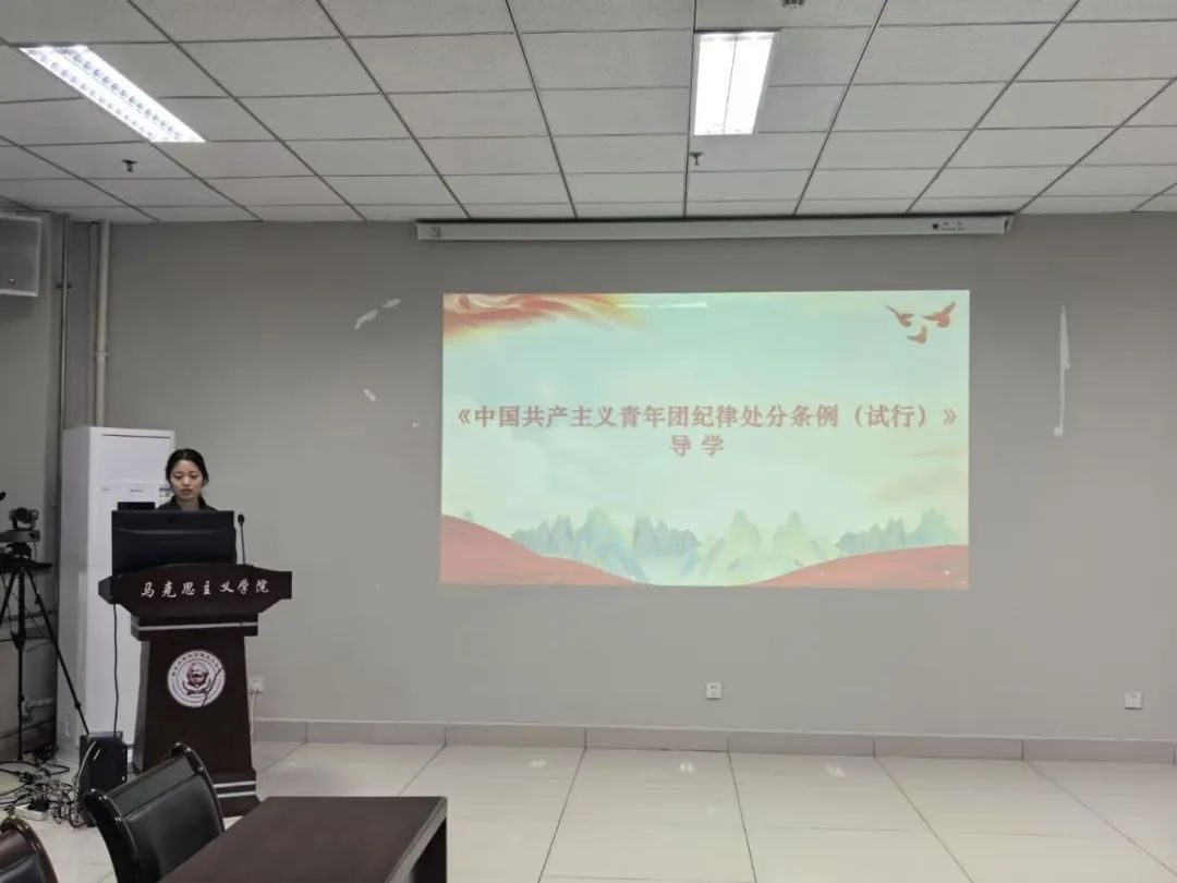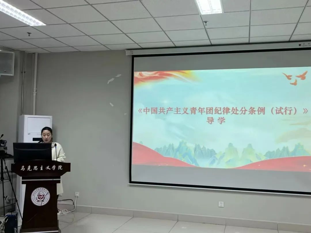 会议伊始,各班团支部书记带领大家学习了《中国共产主义青年团纪律处分条例(试行)》,介绍了纪律处分的种类、运用规则以及各类违纪行为的具体规定,并围绕违反团纪行为的“负面清单”进行详细解读,明确列举多种违规行为,帮助团员们清晰行为边界。同时,还深入剖析团纪与法律、党纪及其他规章制度的衔接关系,引导团干部进一步明纪于心、守纪于行。