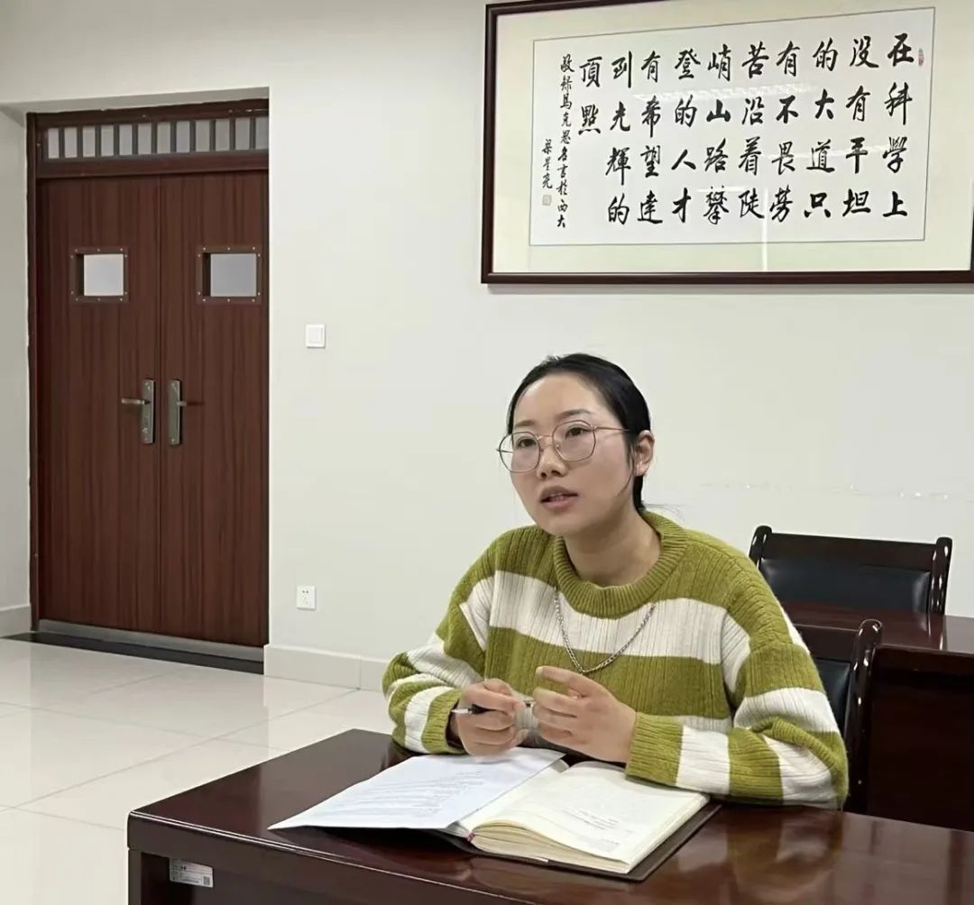 申子桐讲述了“共和国勋章获得者”申纪兰的事迹,从人物介绍、成长路径、三重身份以及砥砺前行四方面娓娓道来,使各位团员深刻感受到了申纪兰同志的伟大精神和坚定信念,推动同学们以申纪兰同志为榜样,不断提高自我,砥砺前行。