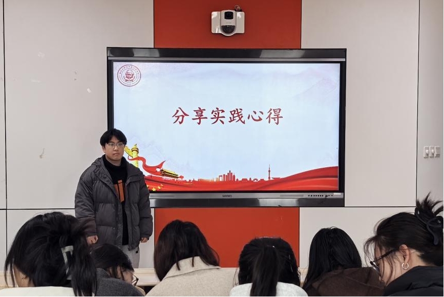 活动伊始,张典向同学们汇报了团支部参与寒假社会实践活动的情况。首先,她详细介绍了寒假社会实践活动的队伍立项情况、活动内容以及实际开展效果。紧接着,她强调了社会实践对提升同学们综合素质的重要性。最后,她向大家发出倡议,希望大家将寒假社会实践中的热情与责任延续到日常生活中,用实际行动践行青春誓言。