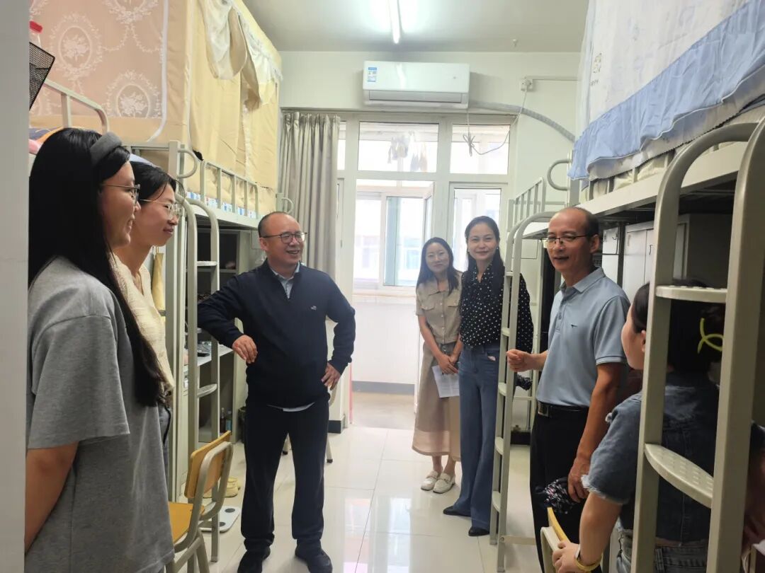 8月29日下午,我院党委书记韩凯峰、院长何博、党委副书记邵平及辅导员刘娟一行来到学生公寓看望我院2025级新生。