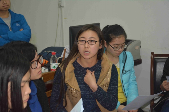 陈丹阳和郝瑜瑜让部员们自由分组,共同讨论针对支教主题的看法,部员们都积极参与,互相发表自己的见解。通过这样的交流形式,使得部员们不仅加深了对讨论主题的认识,并加强了自己的沟通表达能力,对于促进部员间的关系也具有很大的作用。
