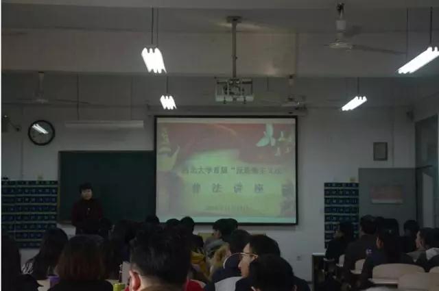 2016年11月13日,西北大学首届“反恐怖主义法”普法讲座在2306召开,我院“红桅杆”思政理论学习社团成员和少数民族学生均有参与。本次讲座旨在学习国家安全法和推进社会主义核心价值观的学习,增强大家国家安全意识,共同维护国家安全。