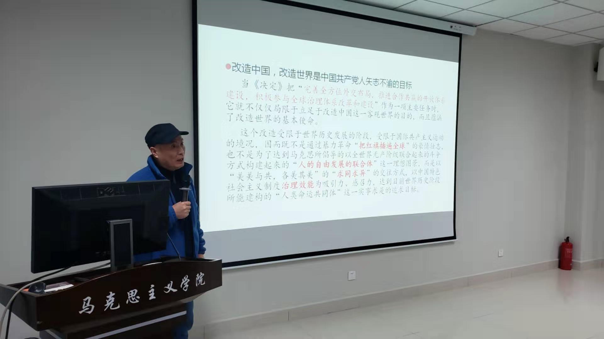 大会后,学院王振民教授为全院教职工做了十九届四中全会解读报告。