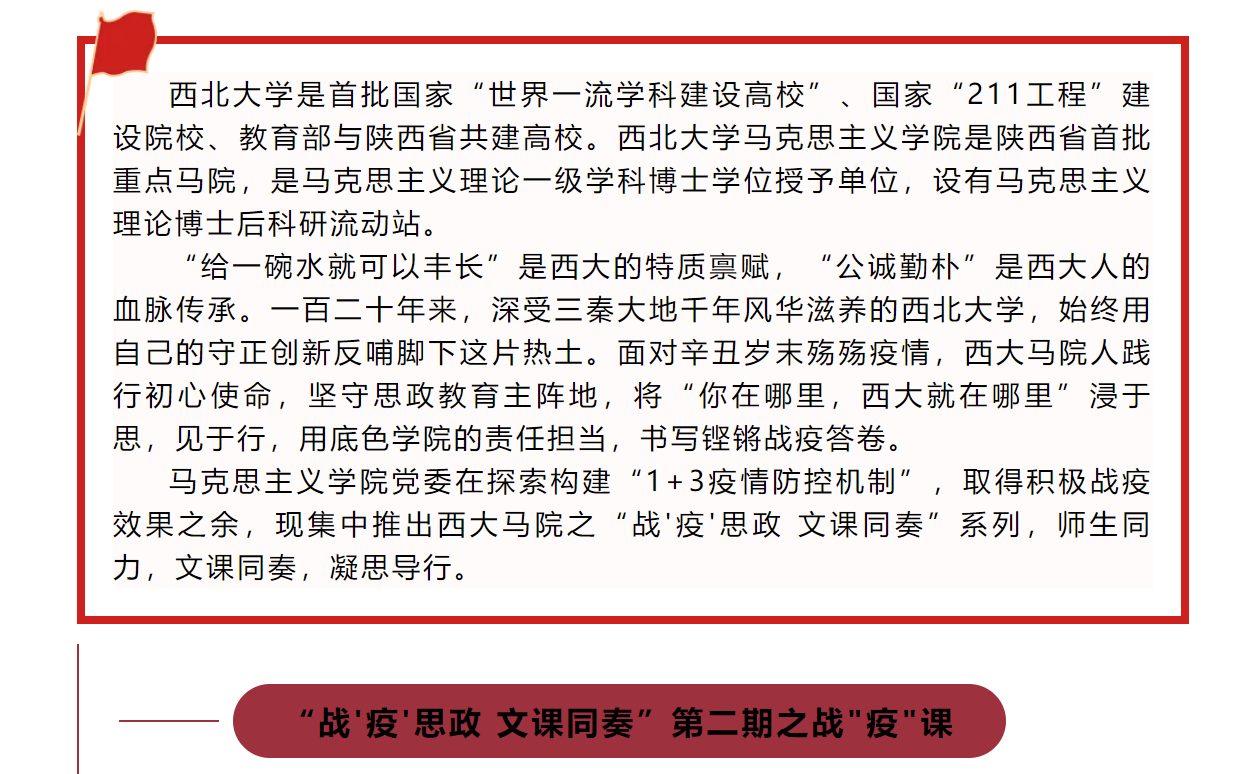 上一条:西大马院:战疫思政 文课同奏 第三期 下一条:西大马院:战疫思政 文课同奏 第一期