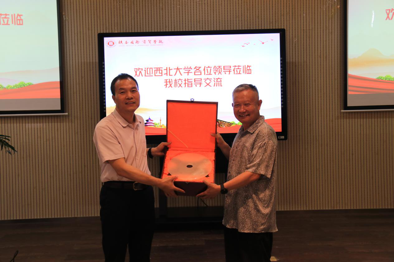 王正斌首先感谢吕建荣一行来访,希望我院真帮实扶,通过线上线下密切交流、集体备课会、联合申报项目、推荐优秀毕业生就业等方式,深度帮扶,开花结果。他要求陕西国际商贸学院马克思主义学院主动对接交流、积极作为,通过到西北大学做访问学者、听课、听讲座等方式,认真学习西北大学好的做法和经验。