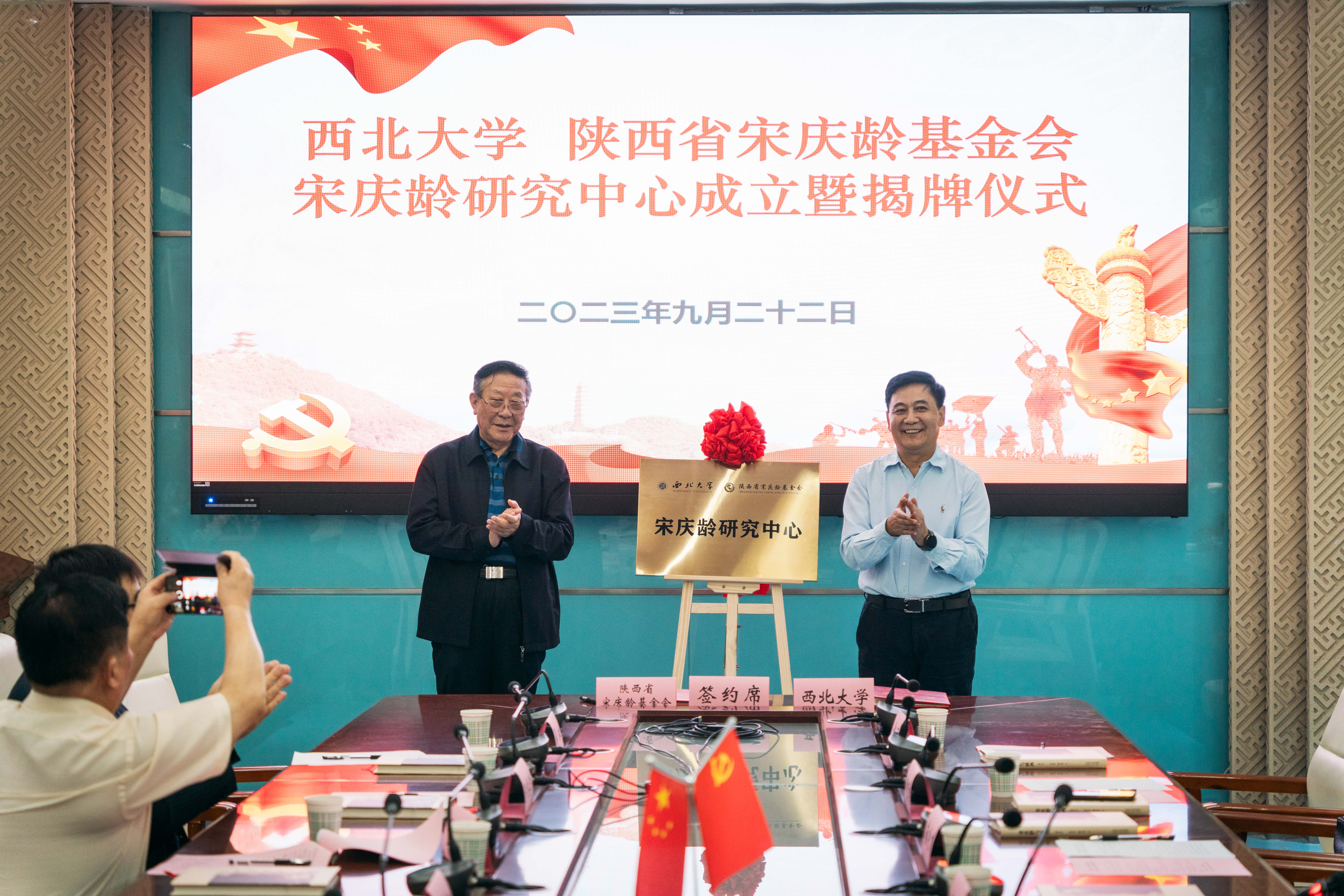 9月22日下午,由我校和陕西省宋庆龄基金会共建的西北大学宋庆龄研究中心成立暨揭牌仪式在太白校区举行。陕西省宋庆龄基金会主席、省人大原党组书记、副主任罗振江,陕西省宋庆龄基金会副主席、省旅游局原党组书记、局长董宪民,陕西省宋庆龄基金会副主席、省委统战部原副部长郑洁,陕西省宋庆龄基金会副主席、十一届省政协常委朱恪孝,我校党委书记王亚杰等出席。陕西省宋庆龄基金会负责同志,国内合作与校友工作处处长崔延力、副处长张艺昆,社会科学科研管理处副处长李丰庆,我院党委书记韩凯峰、院长何博、许门友教授和赵万峰研究员及师生代表参加。仪式由我校党委常委、副校长吴振磊主持。