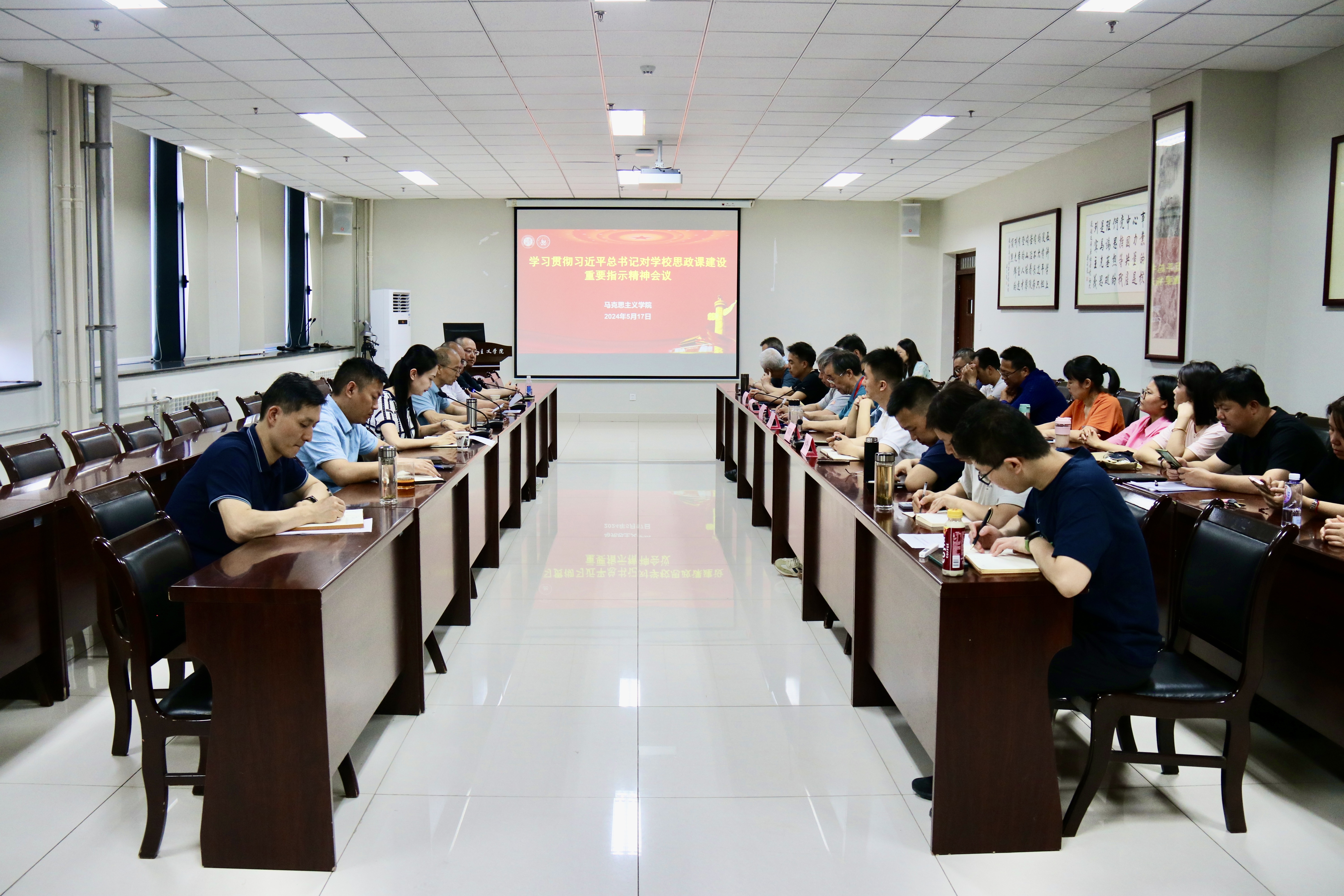 5月17日下午,我院召开学习贯彻习近平总书记对学校思政课建设重要指示精神会议。学院领导班子全体成员、教研部主任、教工党支部书记及思政课教师参加会议。会议由院党委副书记邵平主持。