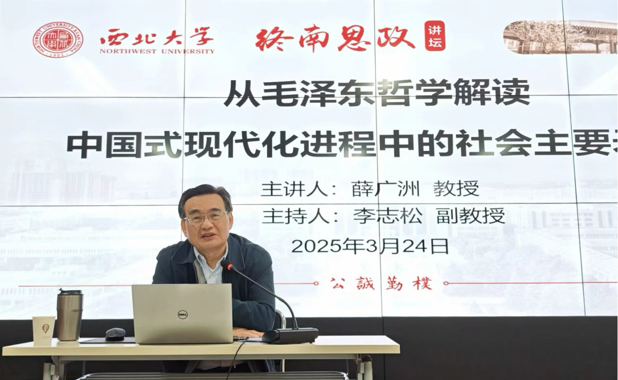 3月24日上午,中共中央党校教授、博士生导师薛广洲应邀做客“终南思政讲坛”第40期,为我院师生作了题为《从毛泽东哲学解读中国式现代化进程中的社会主要矛盾》的学术讲座。讲座由我院李志松副教授主持,学院部分教师和博、硕士研究生近70人参加。